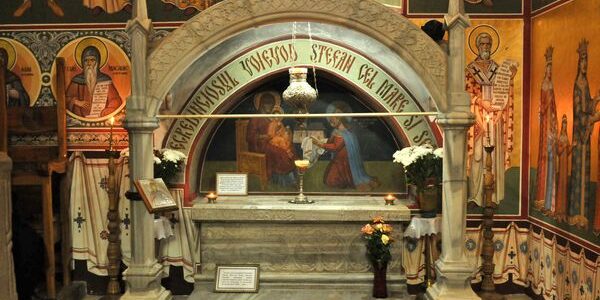 Pe mormântul lui Ștefan cel Mare se află urna de argint depusă cu prilejul serbării din 1871. În latura nordică a gropniței sunt mormintele fiilor lui Ștefan, Bogdan, mort pe 27 iulie 1479, și Petru, mort în noiembrie 1480. În pronaos, pe latura sudică, se află mormântul Mariei, fiica lui Ștefan Voievod, pe latura nordică doamna Maria, soția lui Petru Voievod, și Ștefan Voievod, nepotul lui Petru Voievod. În pridvor, pe latura sudică, se află mormântul Mitropolitului Moldovei Iacob Putneanul, iar pe partea nordică mormântul Mitropolitului Sucevei Teoctist.